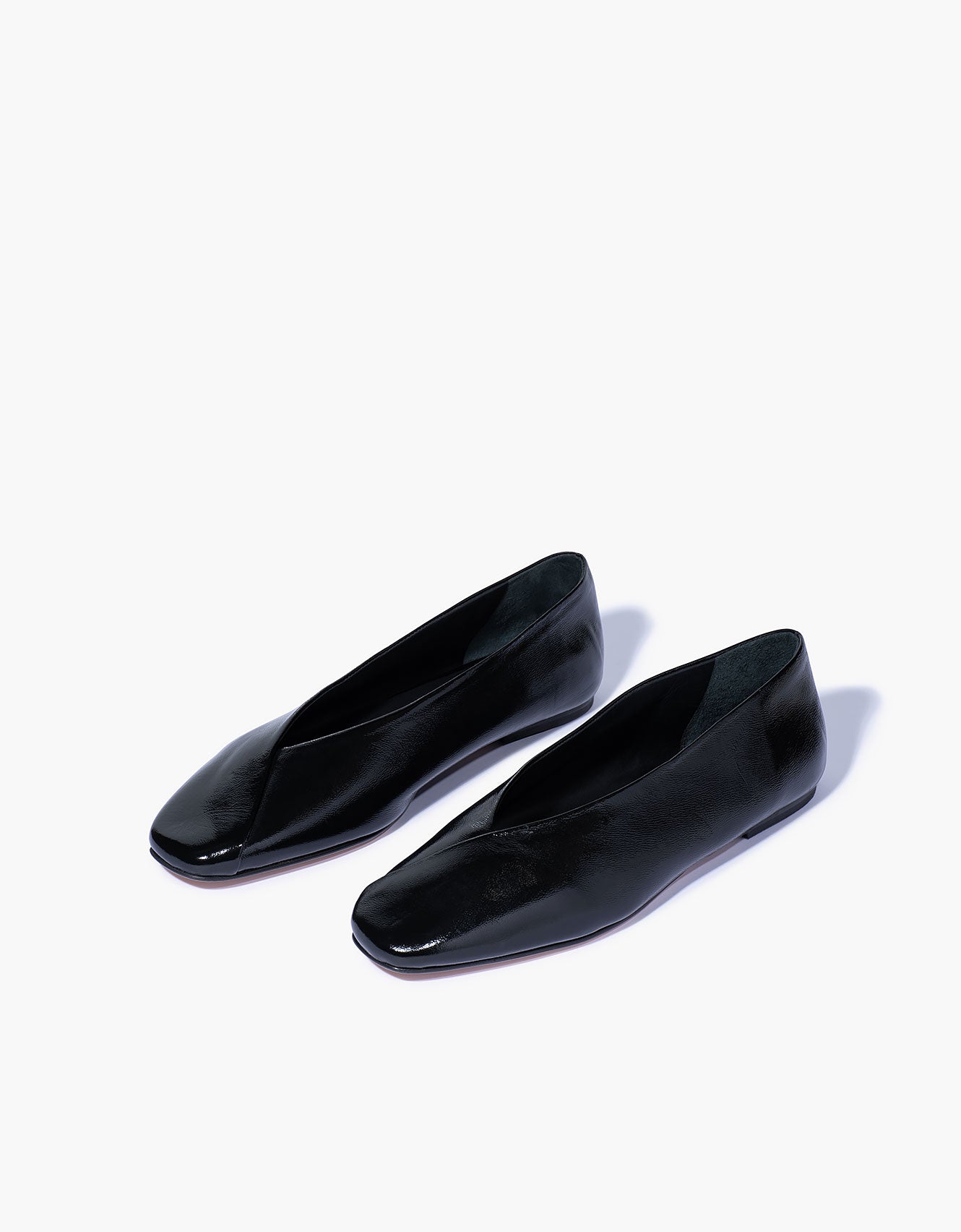 A minimalist silhouette and comfortable for all day wear, Camille features a contrasting fold-over design with a subtly square toe. Perfect for the office, or weekend wear.