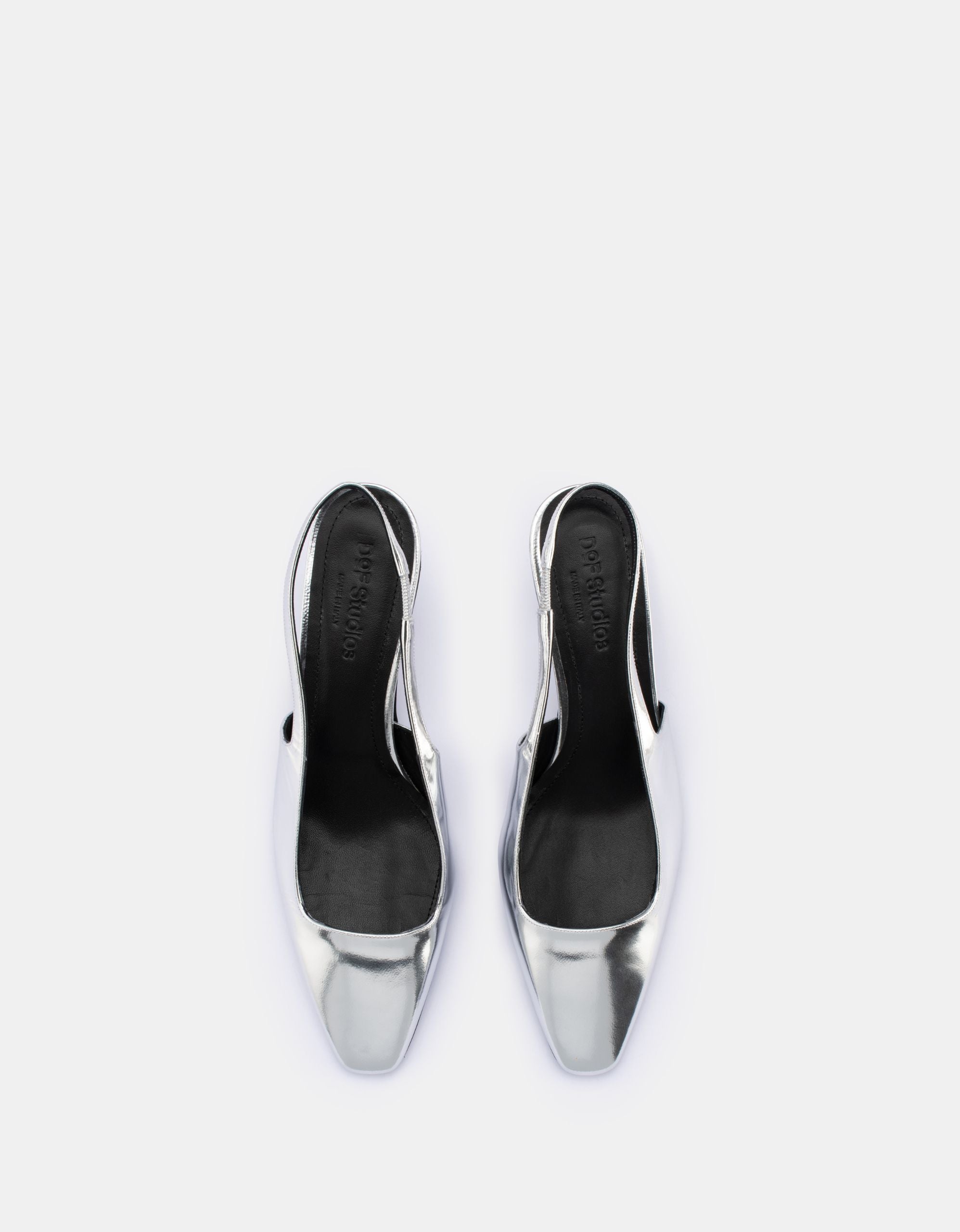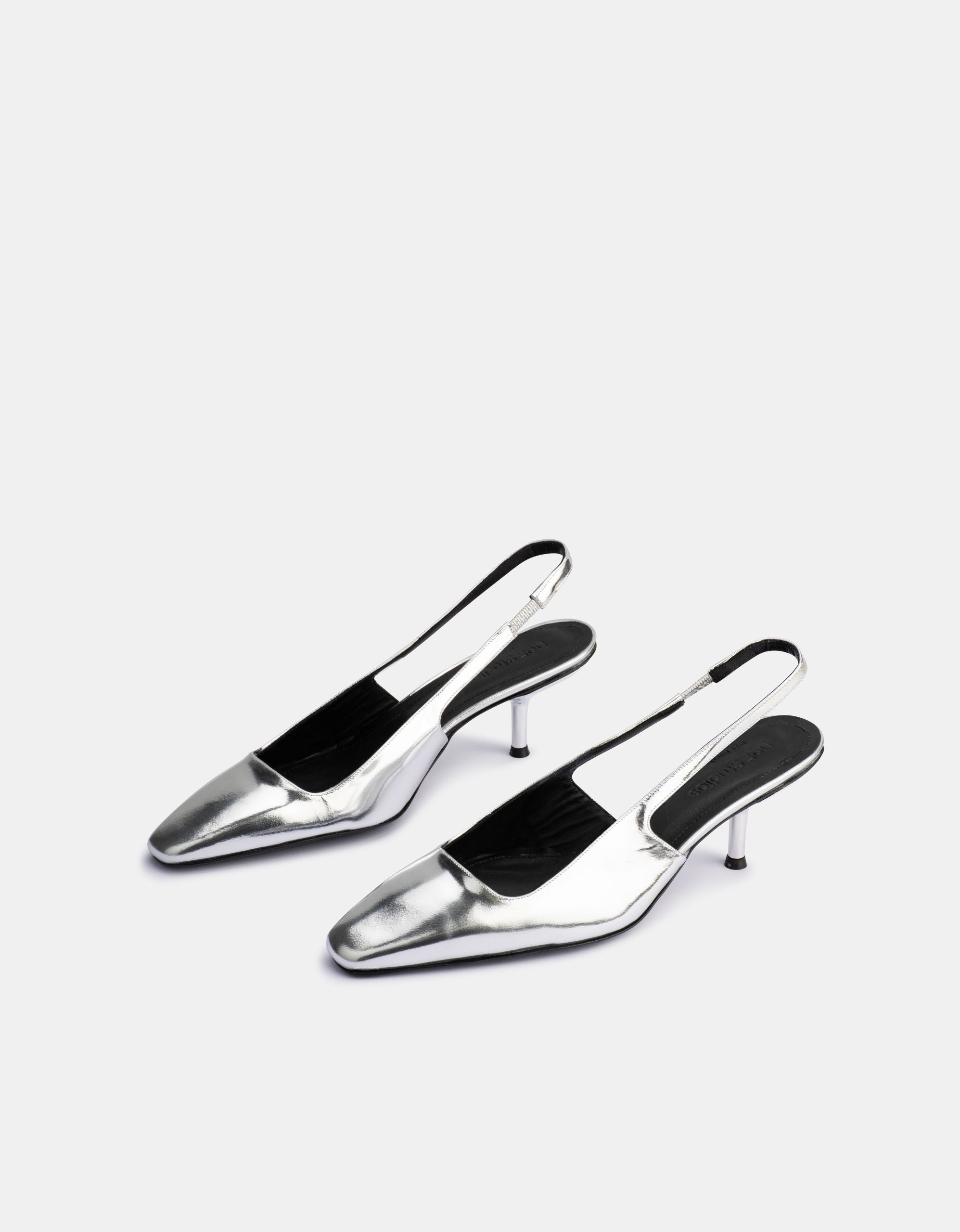 The Cecilia pumps in silver mirror are a fun addition to any wardrobe classic. A sleek slingback silhouette, Cecilia is poised on a mid-heel to instantly elongate and flatter any outfit.