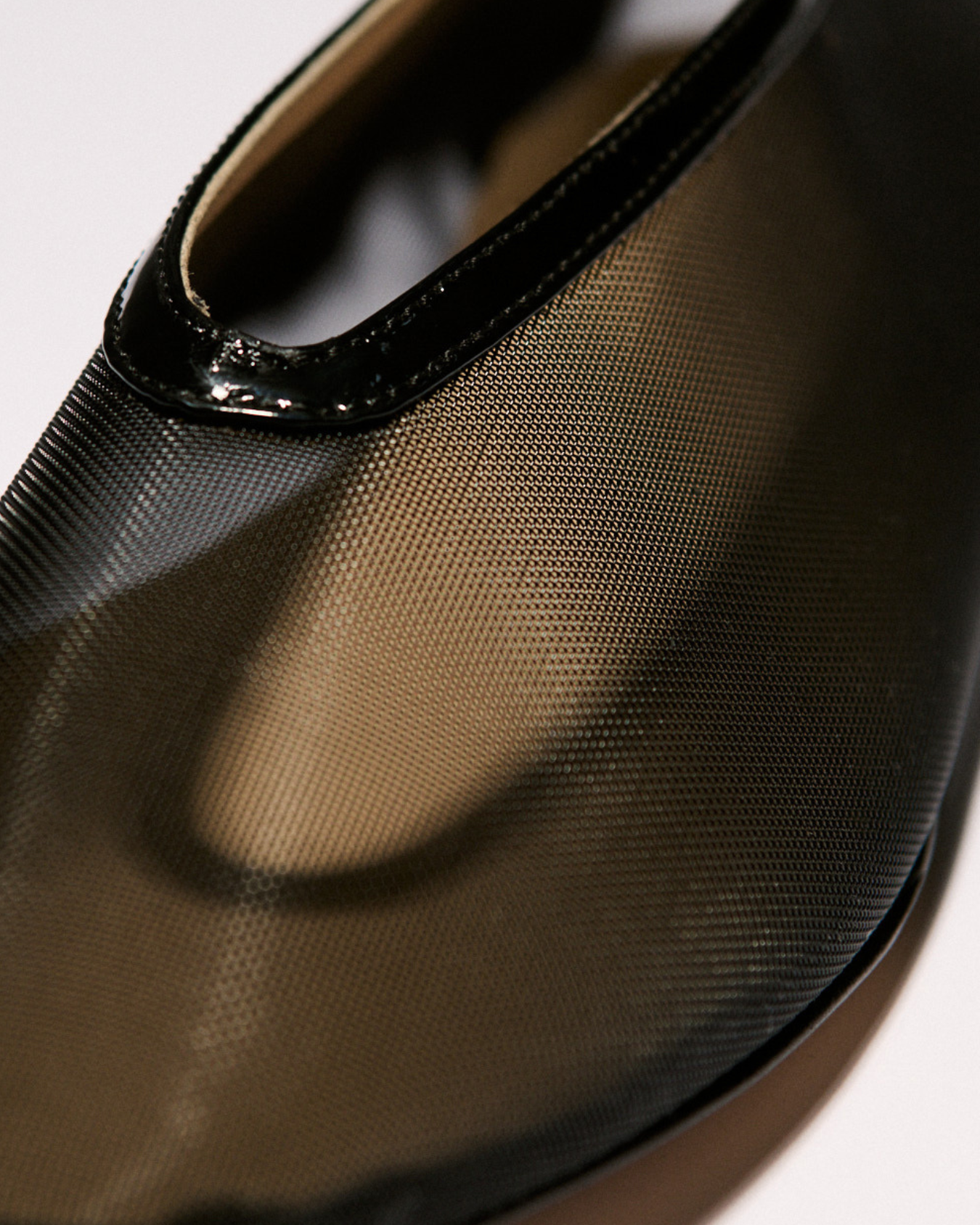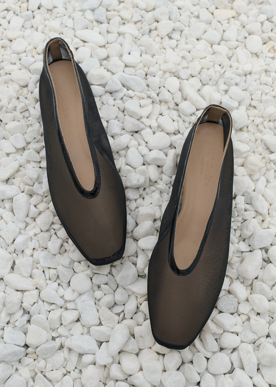 Our barely-there mesh ballet flat. Made from recycled nylon mesh for a glove-like fit, our Maison ballet slipper can be styled trans-seasonally and from day to evening. Our Maison Ballet Slipper is made in a small artisan factory based in Napoli specialising in ballet flat construction.