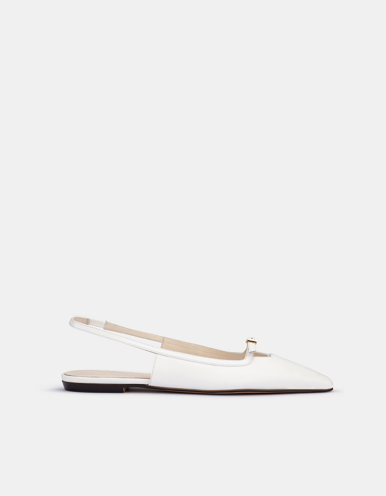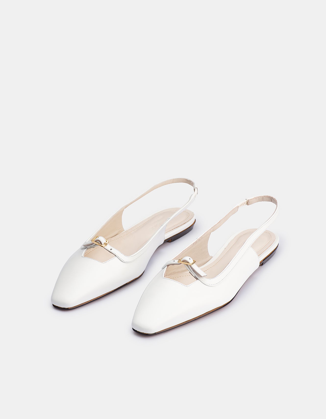 The Paulina Flat is an effortlessly chic slingback with a squared-off long toe. A beautiful investment flat to have in your wardrobe that carry any outfit from desk to dinner. Available in classic black, a statement mirrored silver, refined white and a flirty leopard print; Paulina is the ultimate staple shoe for every season.