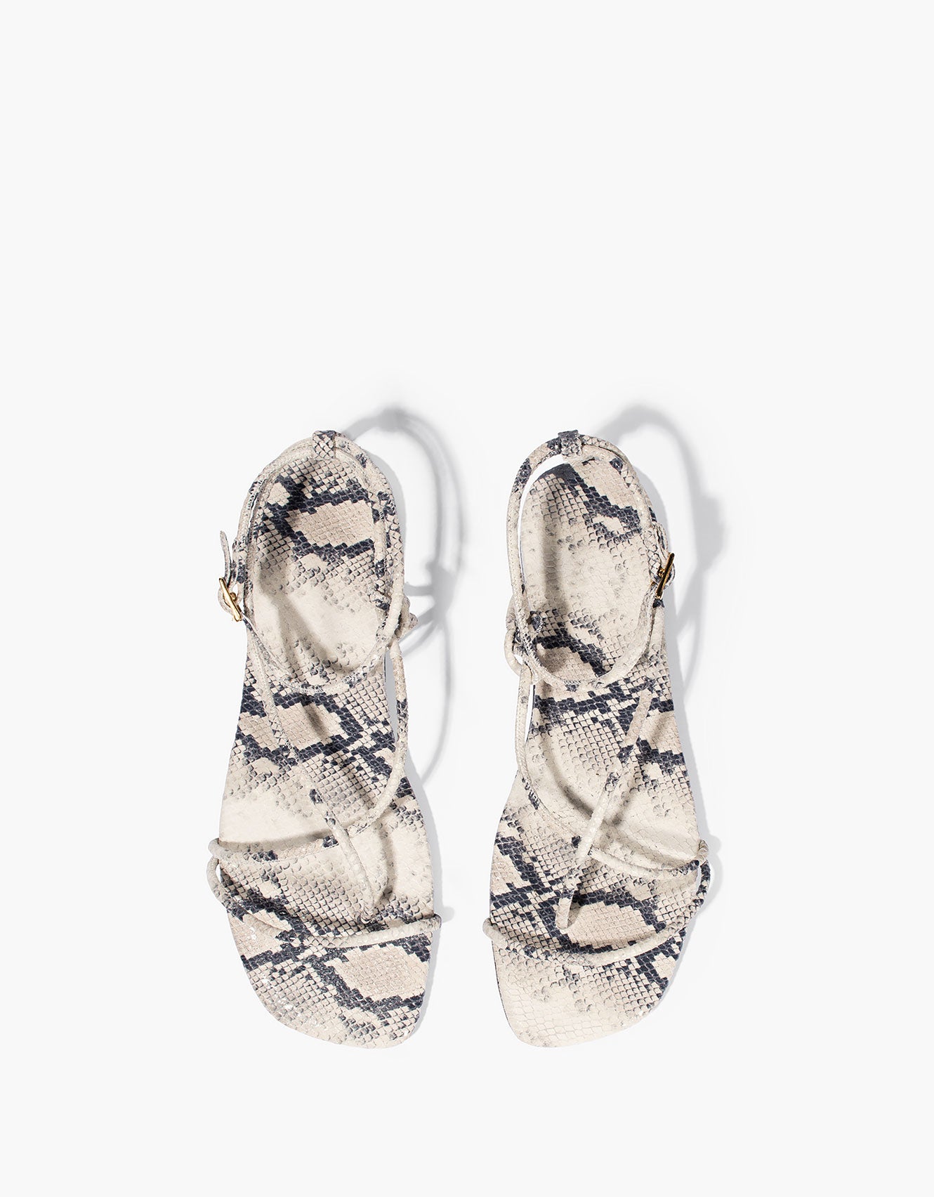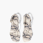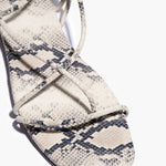 The Lily sandal in Python embossed leather, a barely-there sandal featuring micro knotting and crossover straps. The Lily has a sueded leather sole for the ultimate luxury finish.