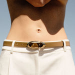 Crafted from LWG certified leather and finished with a gold buckle, the Zoe belt in Camel is both practical and polished. Designed to complement rather than compete, it adds subtle interest to any look - whether cinched over a blazer to define the waist or styled through belt loops for a more classic finish.