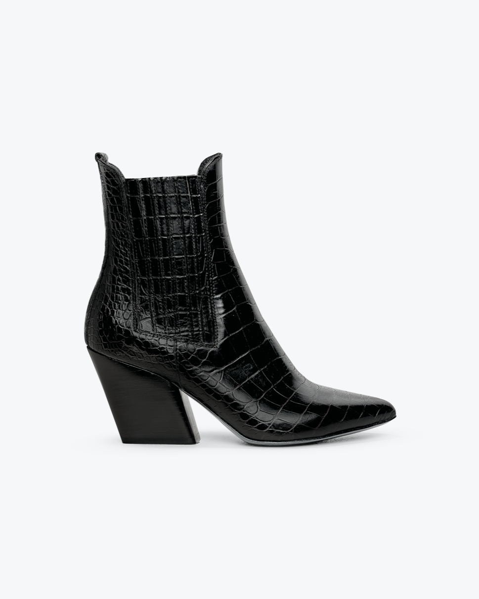 One of our best selling ankle boots with last pairs pulled out for our archive sale. The Astrid boot is perfect season-less ankle boot. Hand made in Italy from croc embossed leathers and premium leather lining.