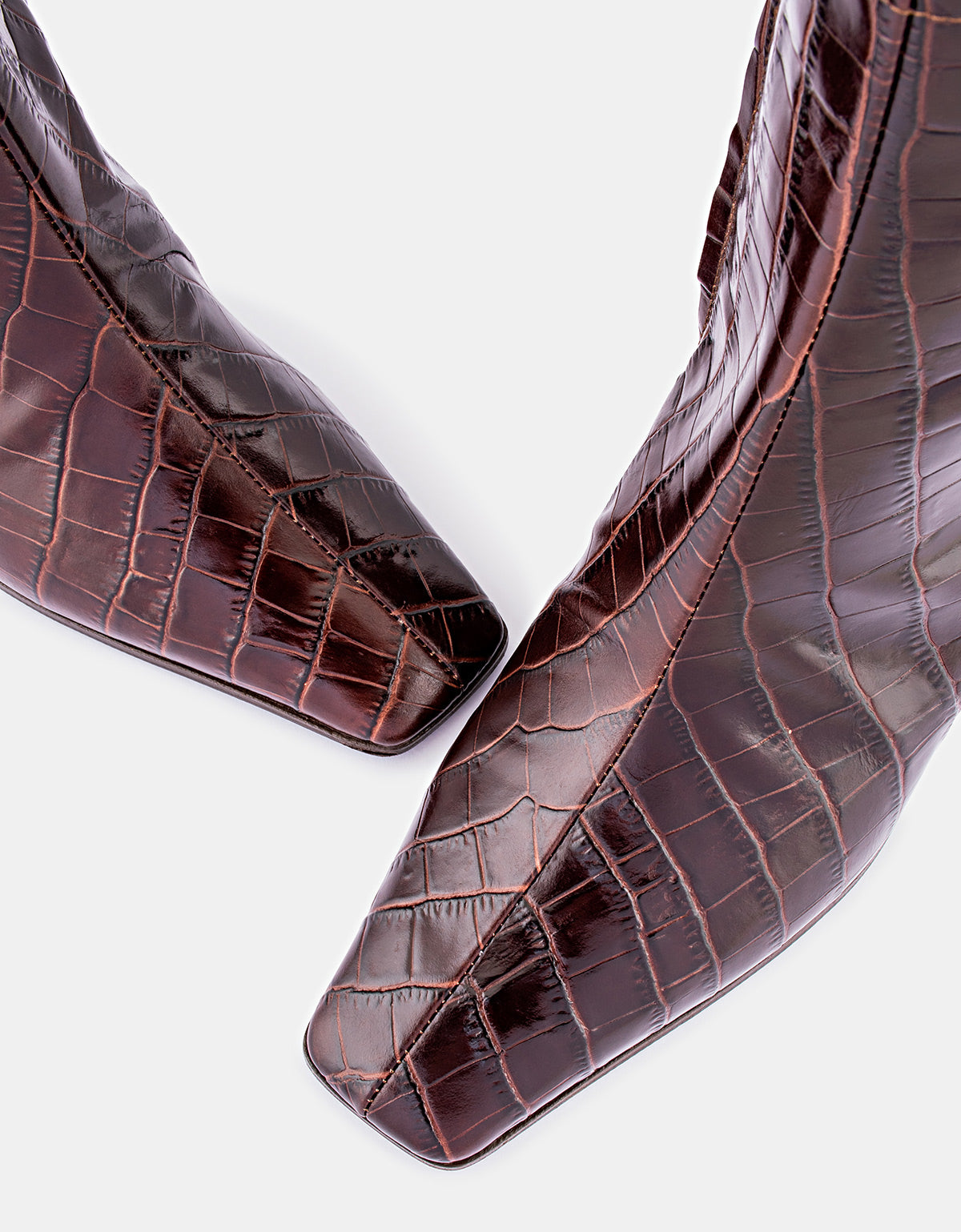 The Bianca Boot in imitation croc stamped leather is designed to be the statement boot you turn to every time. Elevate your modern uniform and create a subtle impact with strong angles and a refined square toe.