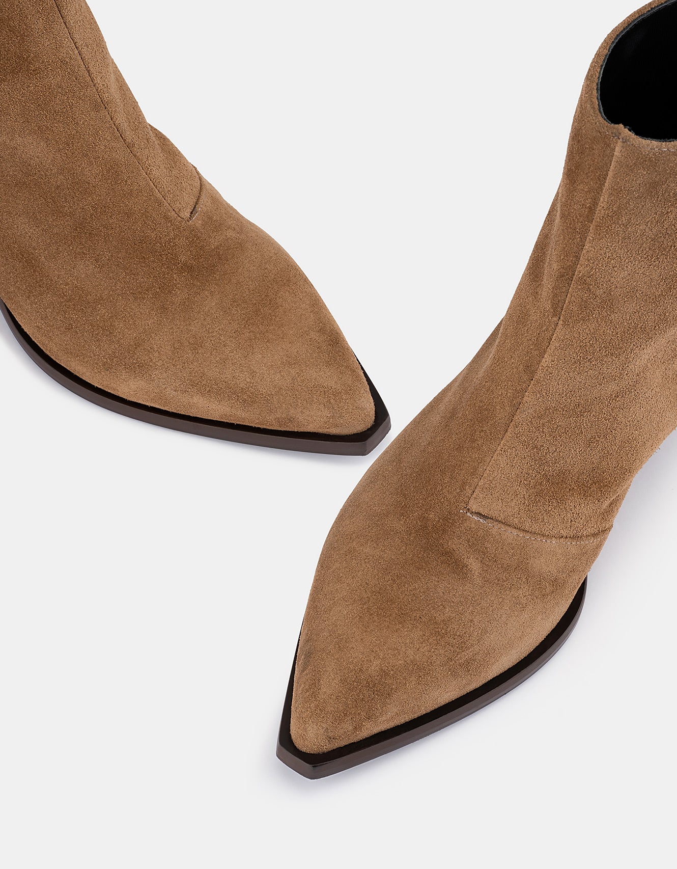 Our classic ankle boot silhouette with a back zip, cut from LWG certified suede and hand made in Italy.