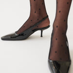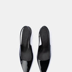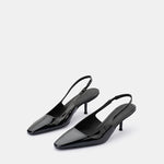 The Cecilia pumps in supple patent Napa leather are a future classic. Boasting a high-gloss black and sleek slingback silhouette, Cecilia has a pointed yet squared-off toe and is poised on a mid-heel to instantly elongate and flatter any outfit.