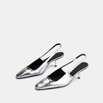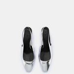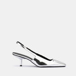 The Cecilia pumps in silver mirror are a fun addition to any wardrobe classic. A sleek slingback silhouette, Cecilia is poised on a mid-heel to instantly elongate and flatter any outfit.
