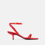A sleek heel to complete any look this event season. Leona is simple yet sculptural, and features a wrap-around ankle strap, exaggerated pointed toe and a gold micro buckle closure.