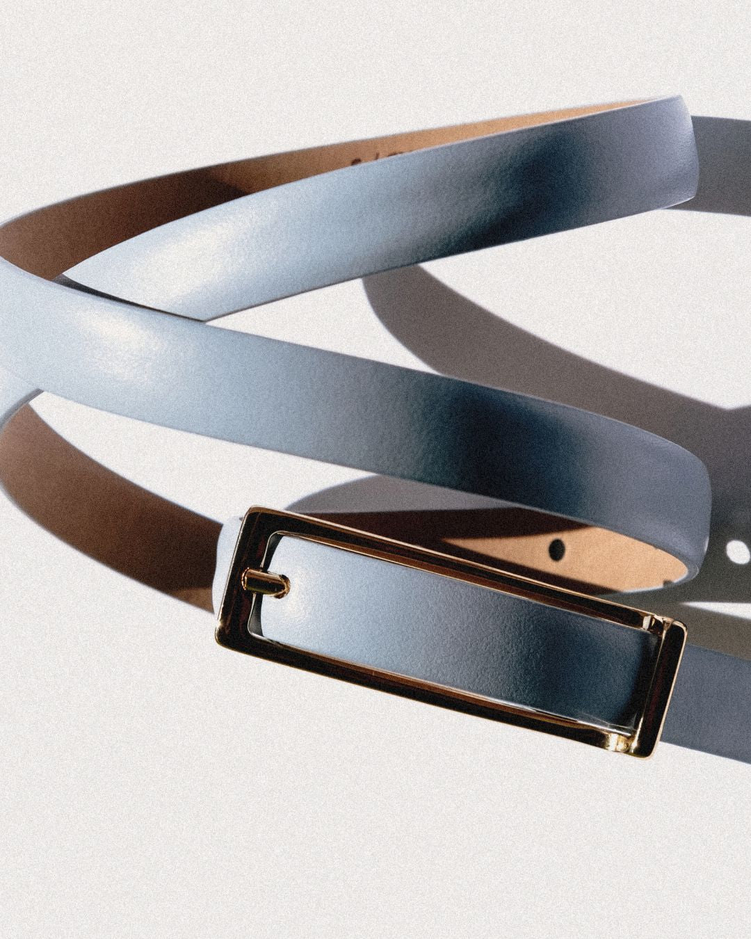 Crafted from LWG certified leather and finished with a gold buckle, the Leo belt in Ice Blue is both practical and polished. Designed to complement rather than compete, it adds subtle structure to any look - whether cinched over a blazer to define the waist or styled through belt loops for a more classic finish.