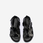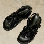 The Marina Sandal was introduced in the spring of 2024. Crafted in Italy from embossed nappa leather. Marina is shaped to a wide silhouette and features interlocking straps and a velcro fastening strap.