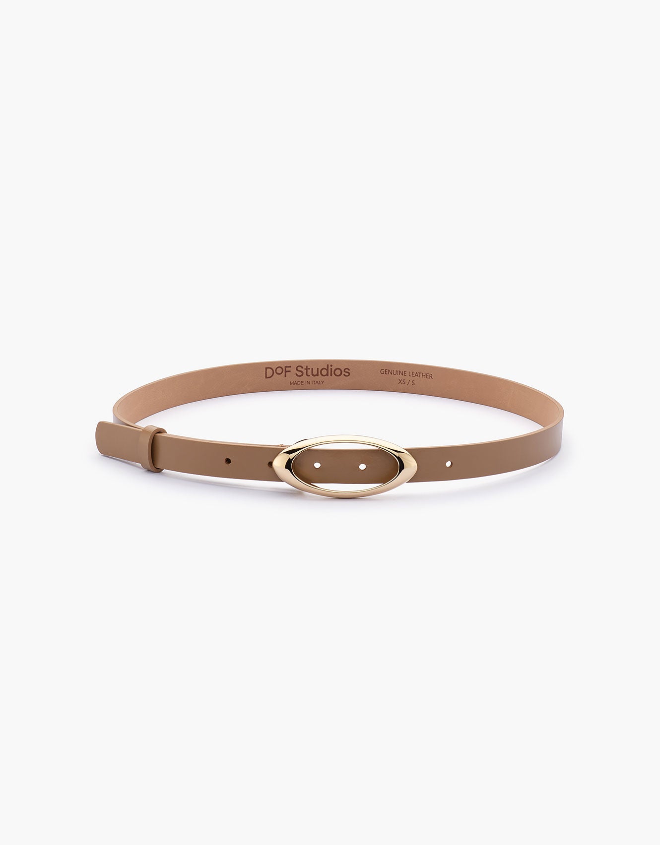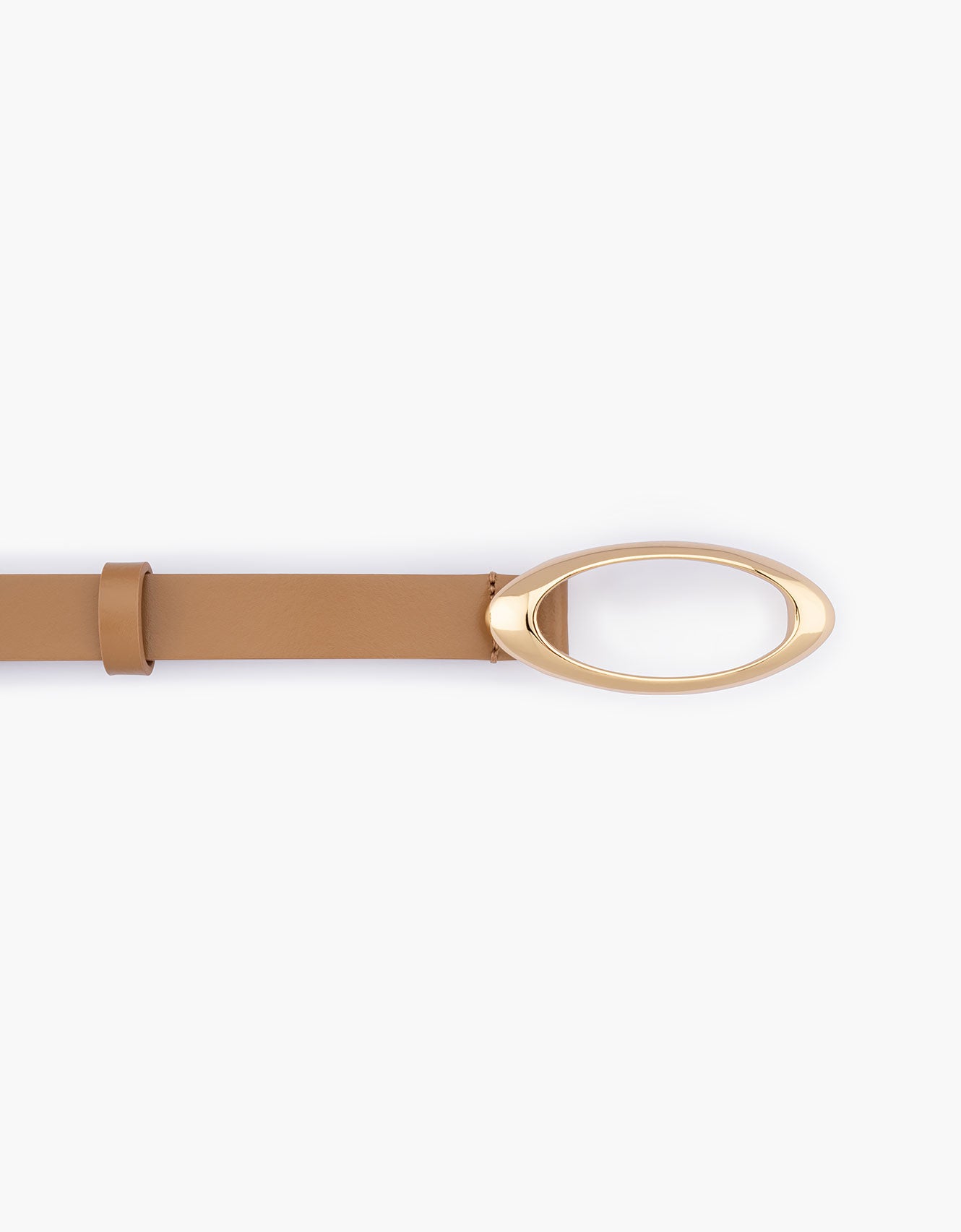 Crafted from LWG certified leather and finished with a gold buckle, the Zoe belt in Camel is both practical and polished. Designed to complement rather than compete, it adds subtle interest to any look - whether cinched over a blazer to define the waist or styled through belt loops for a more classic finish.
