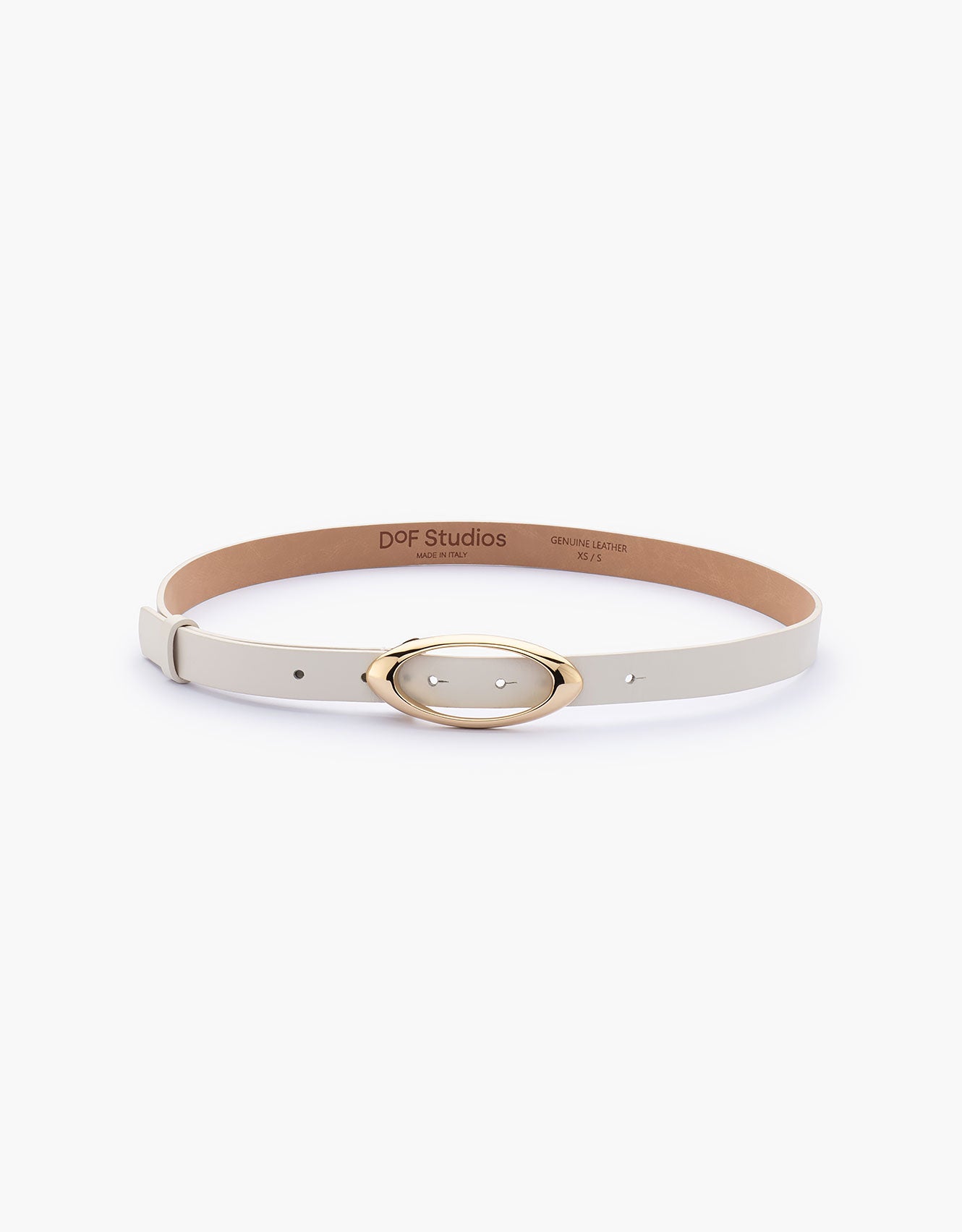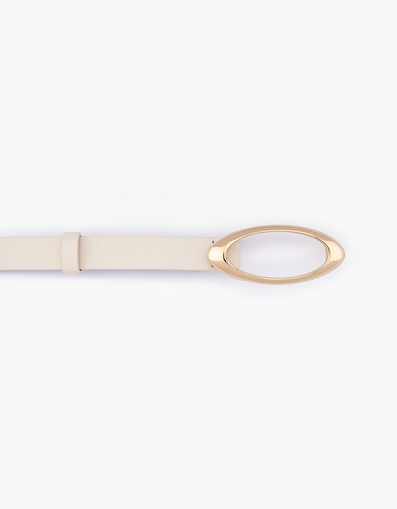 Crafted from LWG certified leather and finished with a gold buckle, the Zoe belt in Ivory is both practical and polished. Designed to complement rather than compete, it adds subtle interest to any look - whether cinched over a blazer to define the waist or styled through belt loops for a more classic finish.
