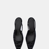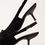 The Cecilia slingback pumps in plush black crushed Velvet are a subtle statement shoe, offering a refined and textural finish to any outfit. Handcrafted in Italy, Cecilia has a pointed yet squared-off toe and is poised on a mid-heel. Whether you're dressing for work, or pairing them back with your favourite vintage denim, Cecilia is as versatile as they are chic and will offer endless options to your wardrobe rotation.