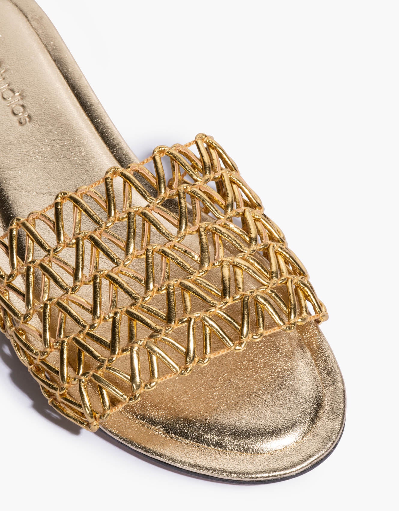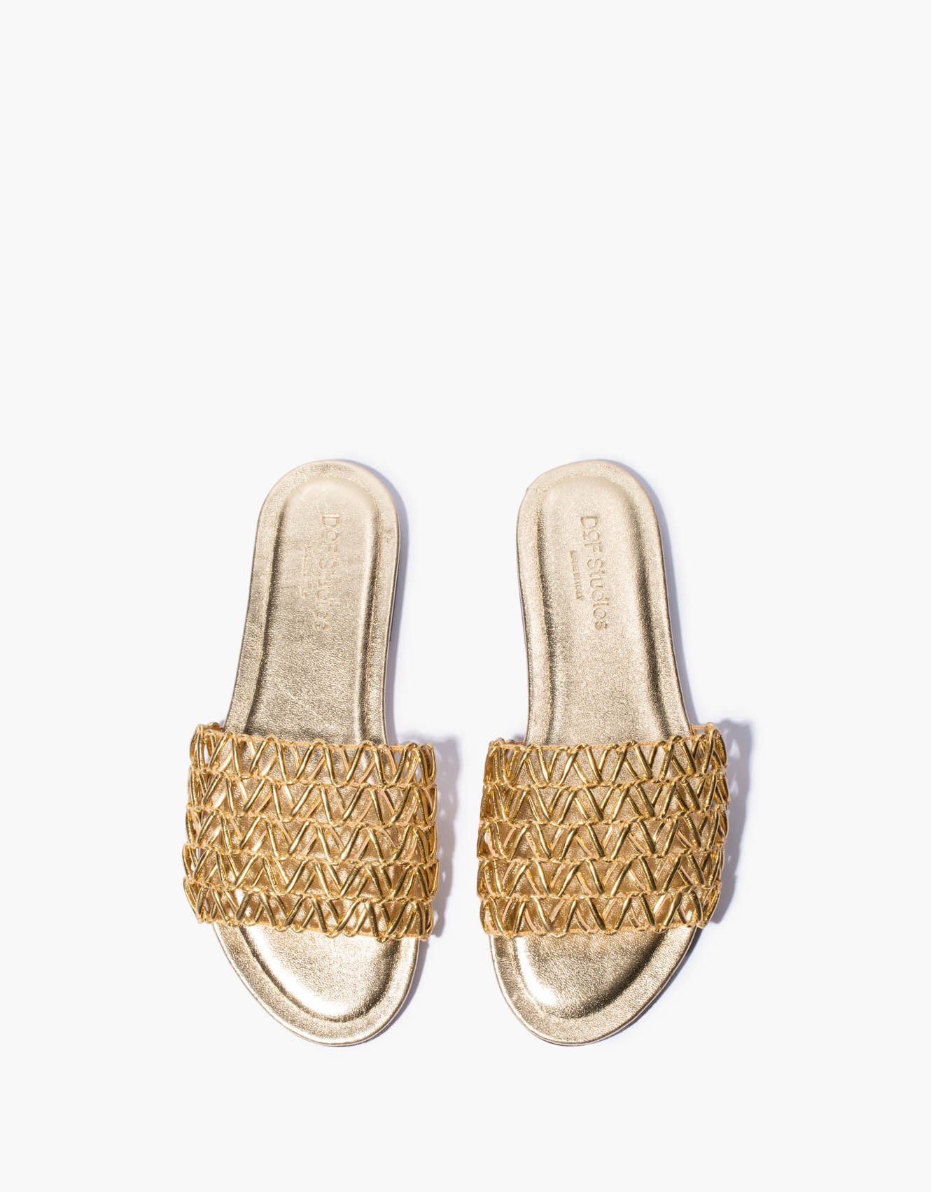 I absolutely love these new gold woven slides! The metallic finish gives them a chic, glamorous touch, and I find the braided strap both stylish and comfortable. They’re super easy to slip on, which makes them perfect for when I’m heading out casually or dressing up a bit for dinner.