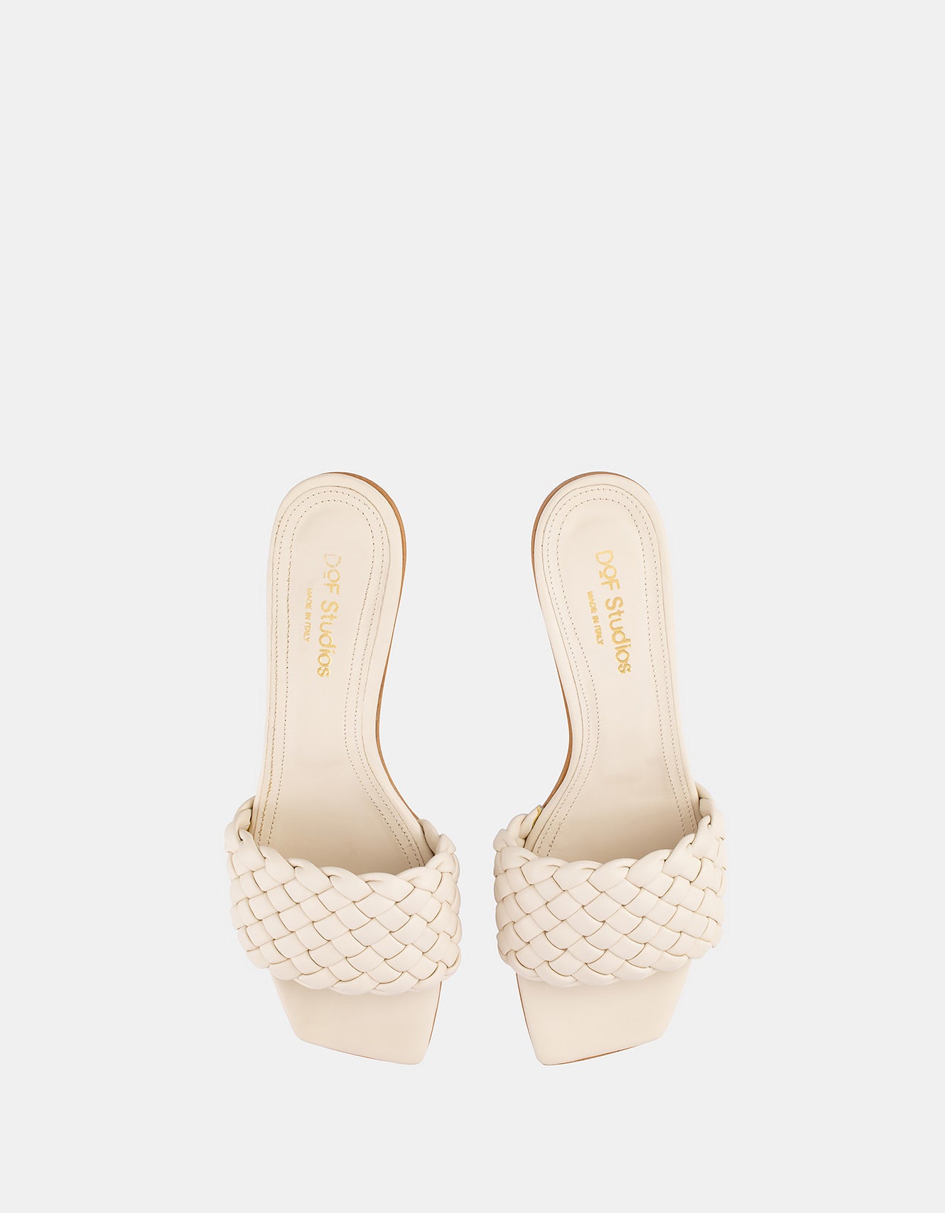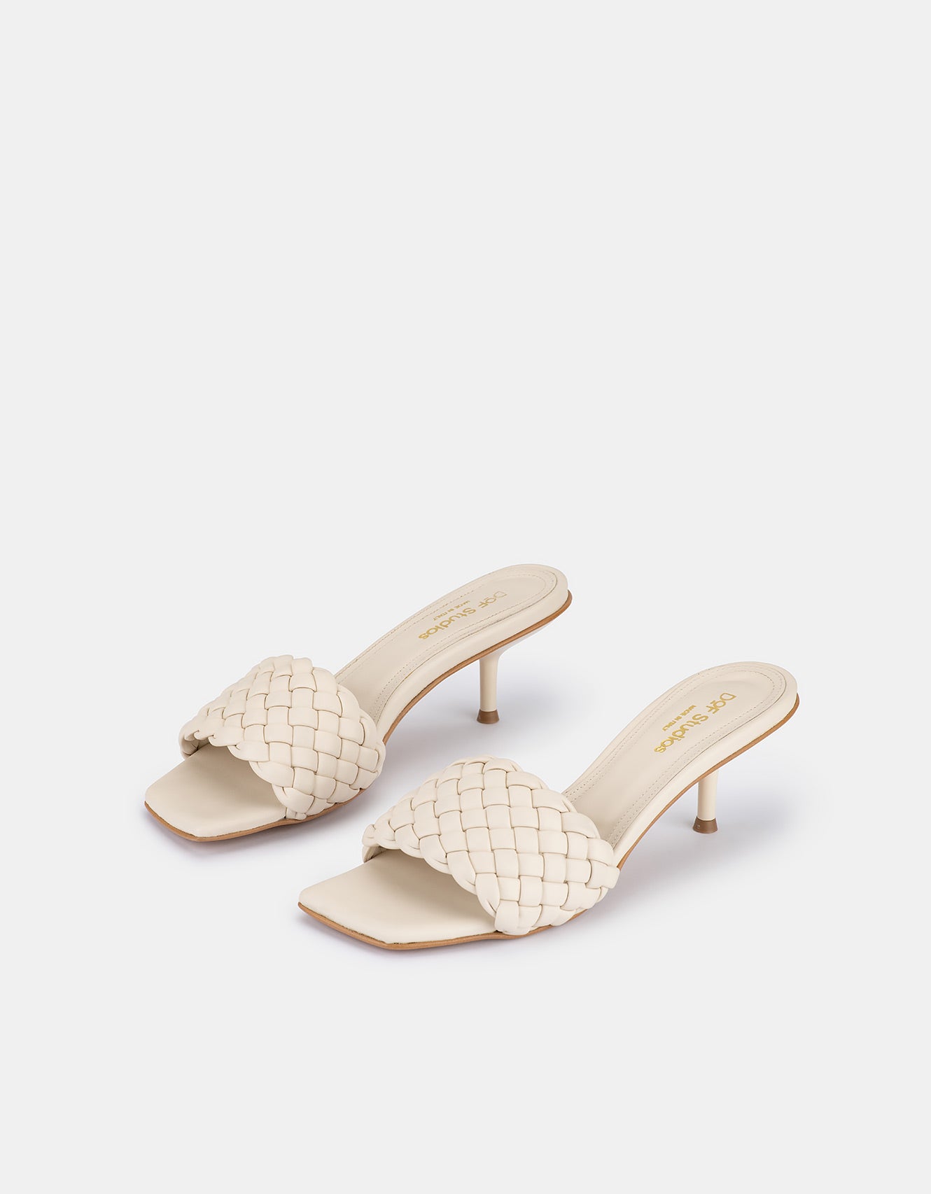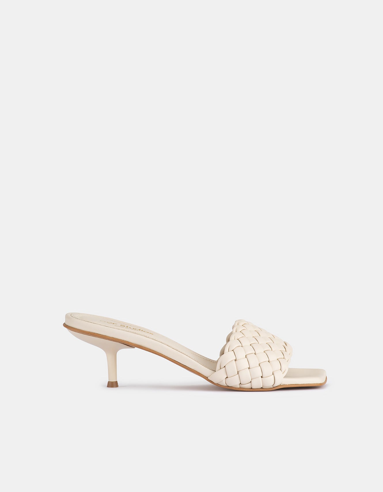 A simple mule with hand weaved leather from a soft nappa leather on a 60mm heel. Perfect for all day event wear or dressing up with your favourite denim for a cool out to dinner look with friends.
