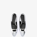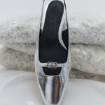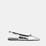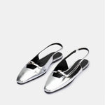 This season we debut the Paulina sling back flats in silver mirror. Embellished with a micro buckle, and a pointed yet squared off toe, these flats will be the perfect addition to your spring wardrobe.