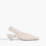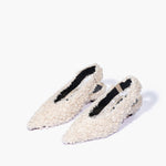 The Tory Heels are a modern interpretation of a classic pump, with bold slingback straps and a low heel. Imagined in a cream shearling fabrication, Tory offers a distinctive point of interest to a minimalist outfit, transitioning from day to evening.
