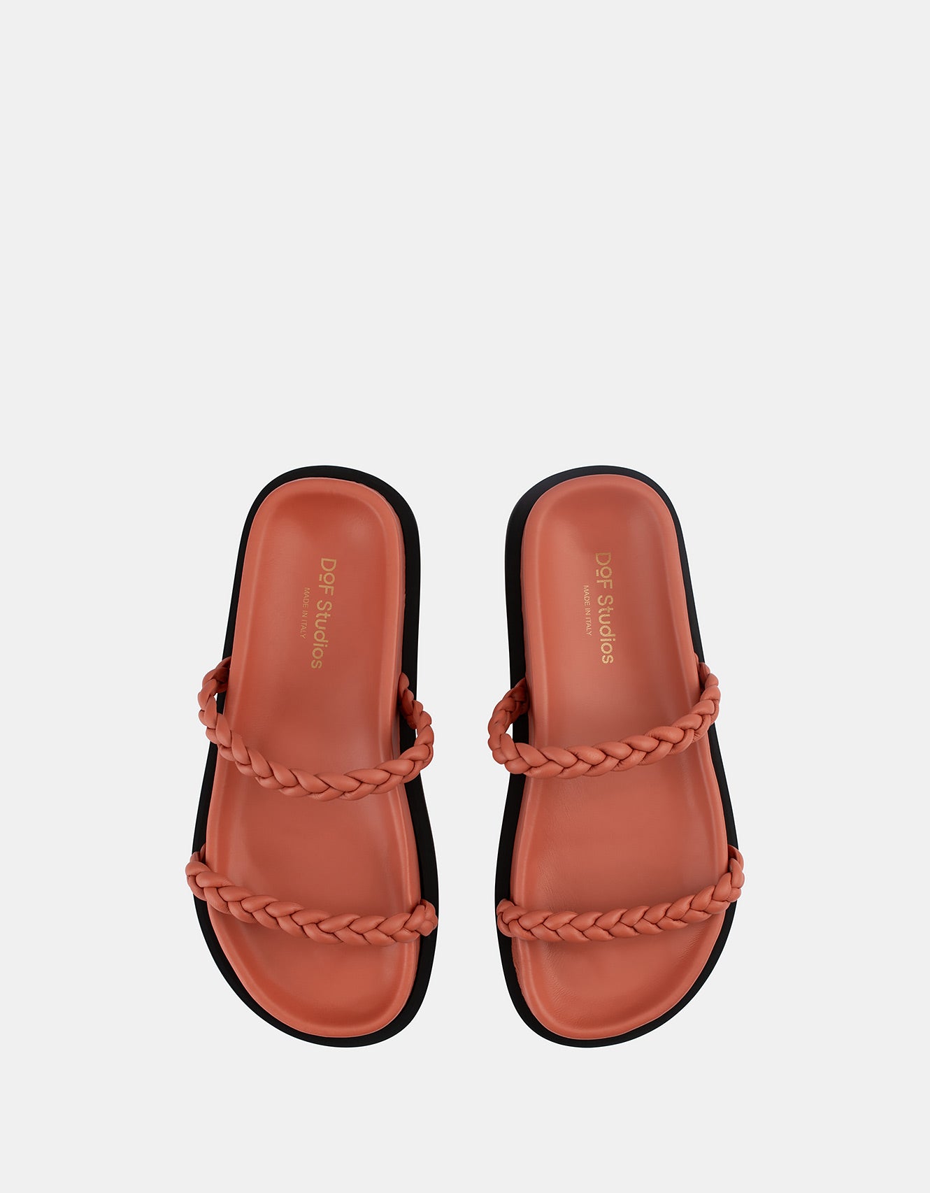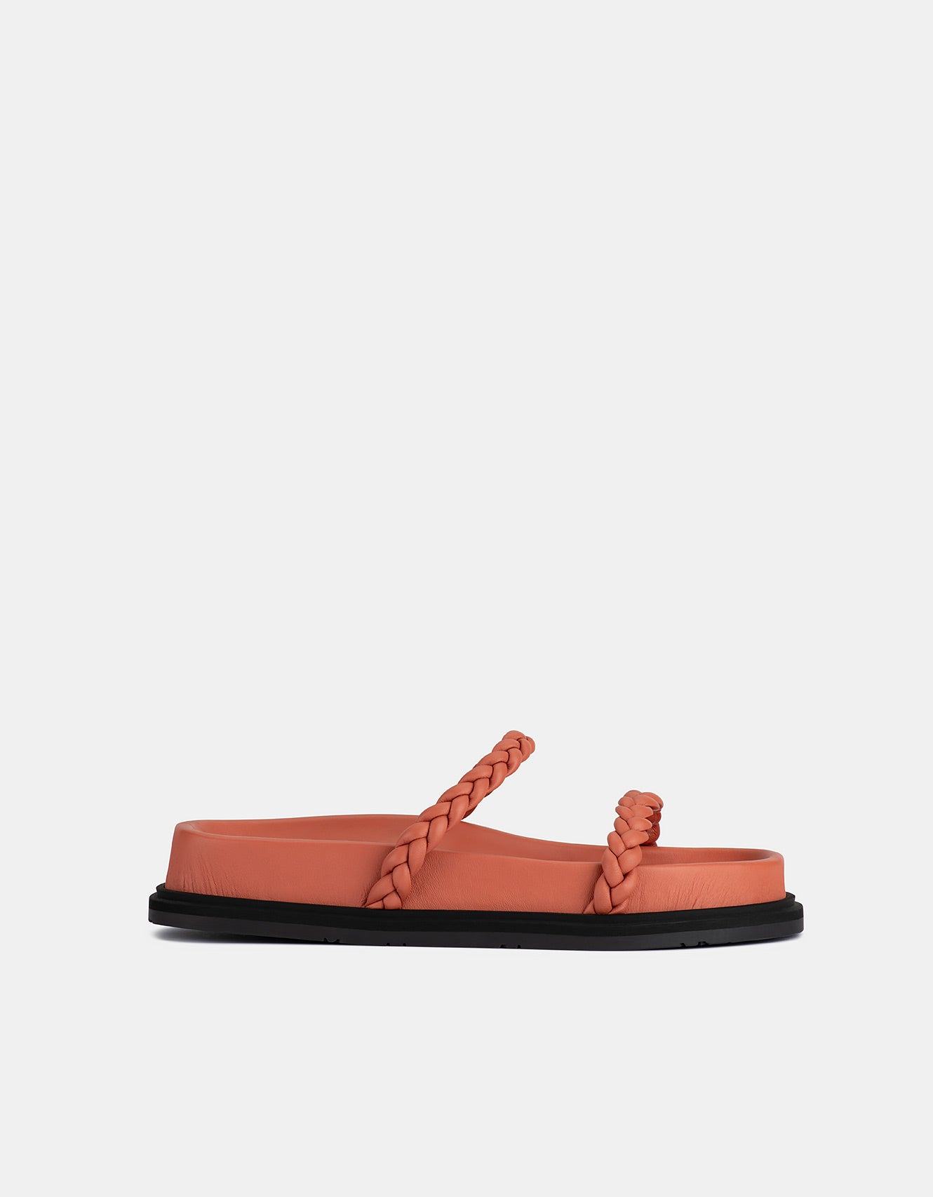 A minimal sandal design, elevated with braided leather detailing and a lifted platform sole.