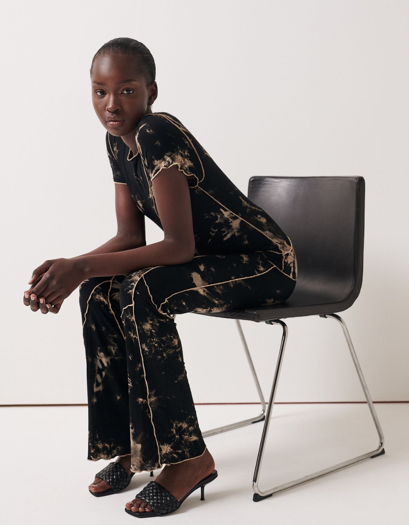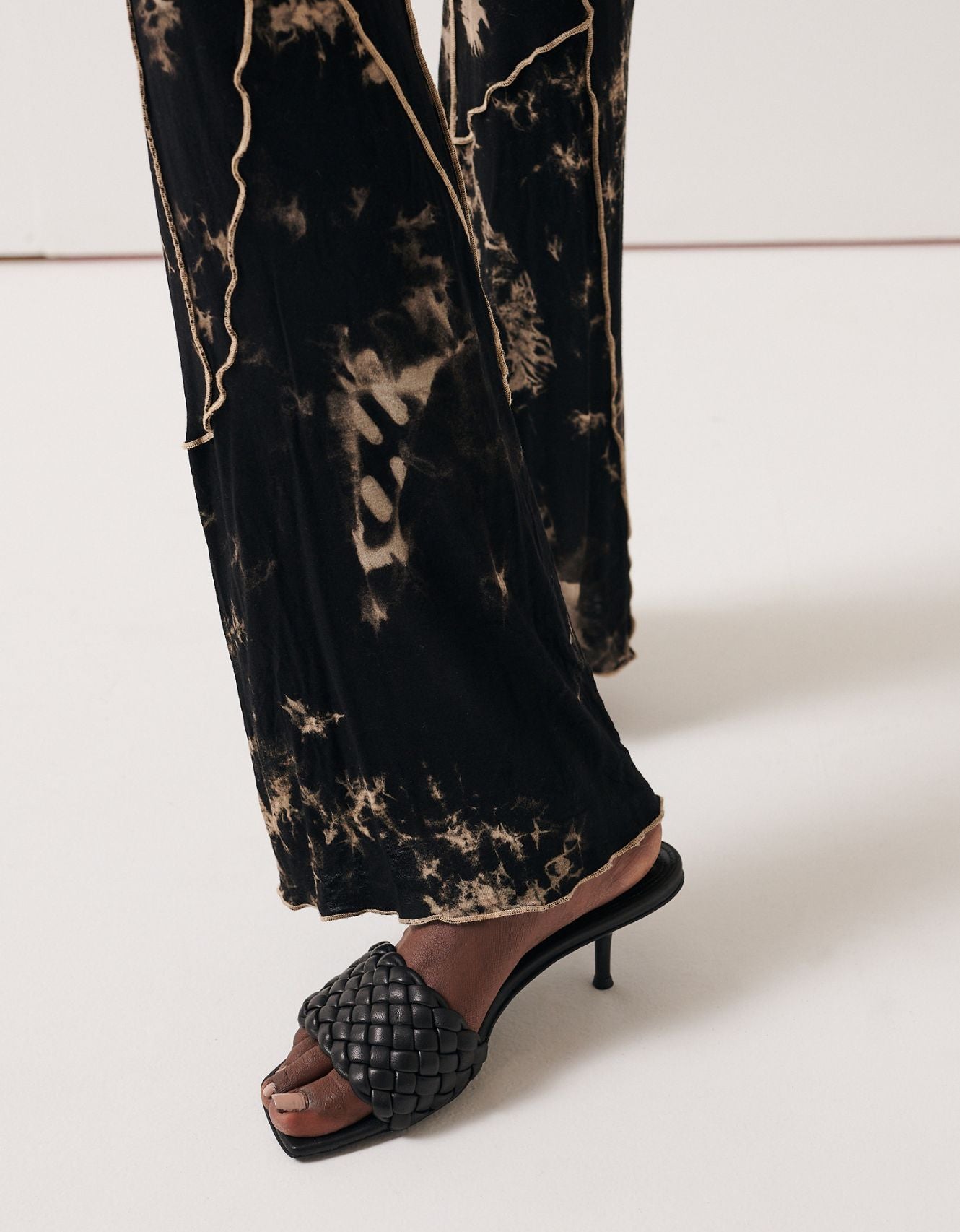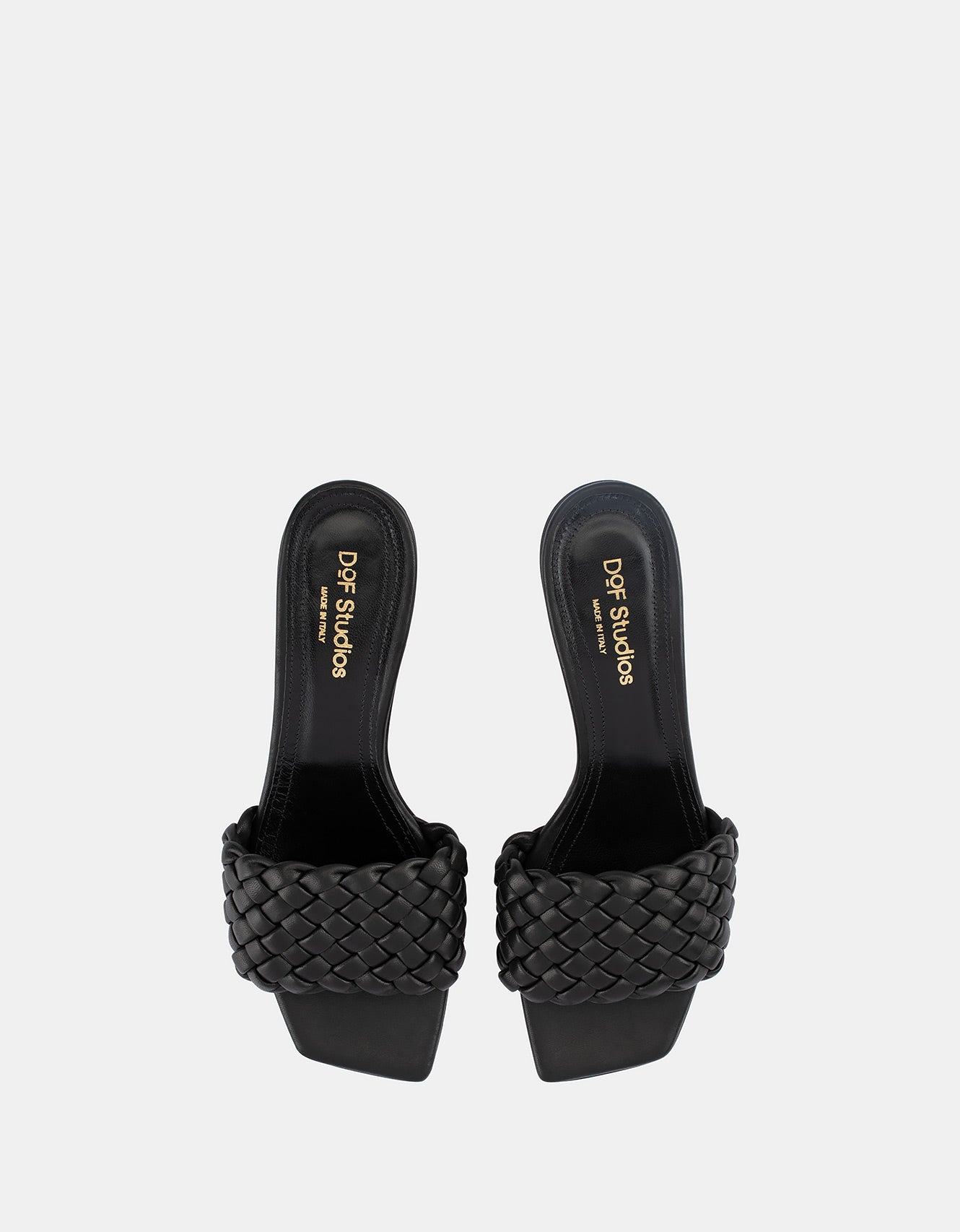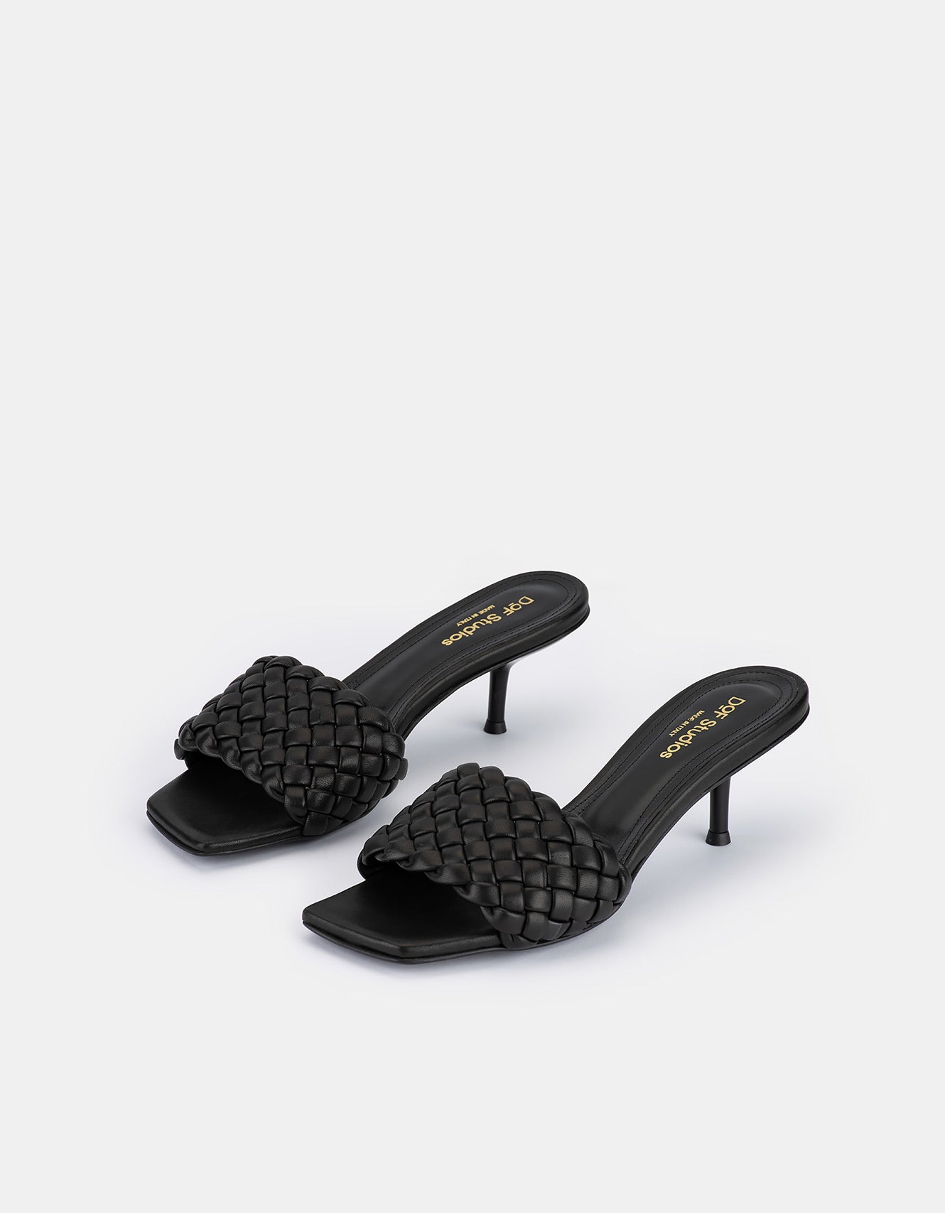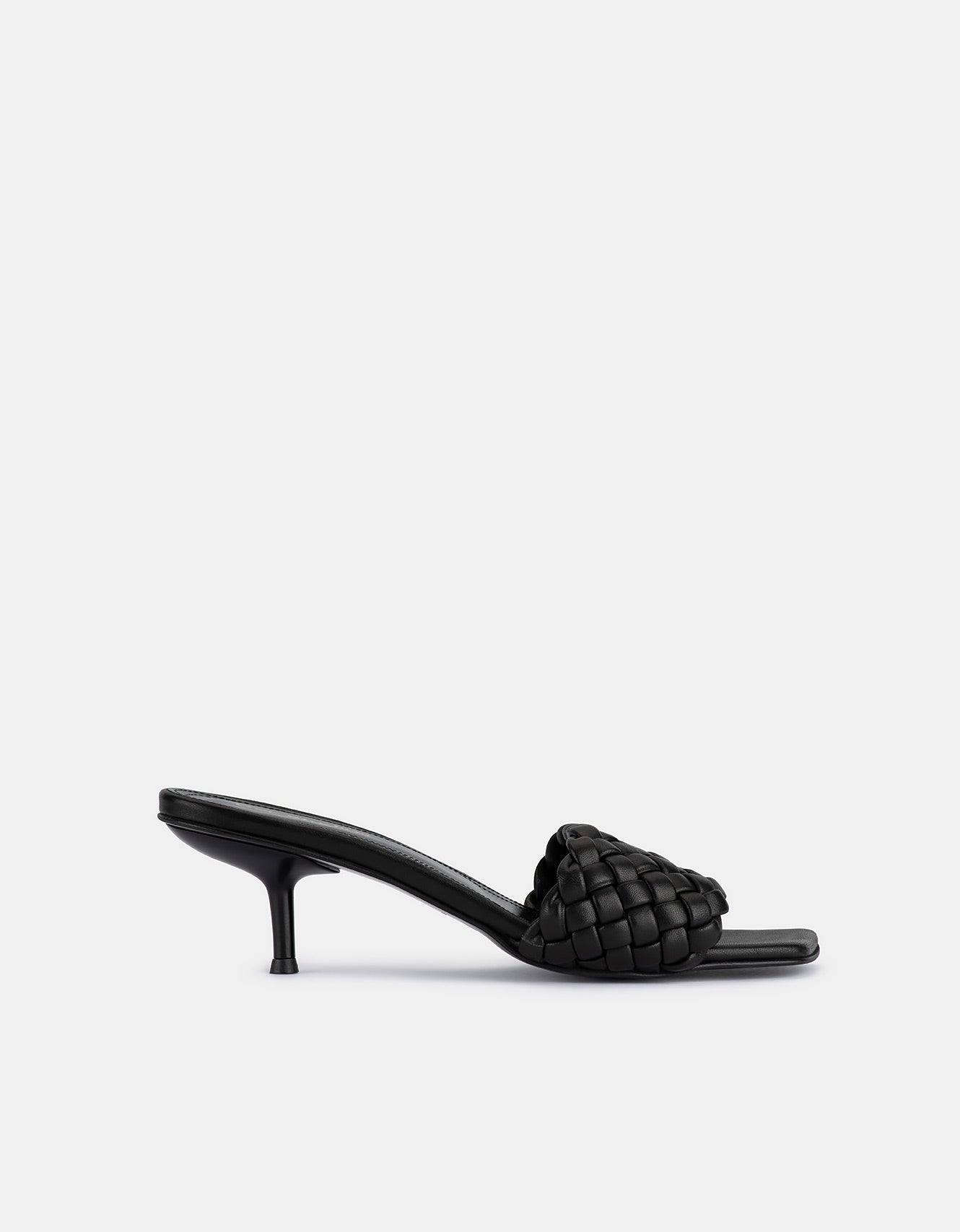 A simple mule with hand weaved leather from a soft nappa leather on a 60mm heel.