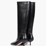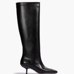 Hand-crafted from a beautiful chrome free Vitello leather, Bettina perfectly balances a knee-high statement silhouette with a low heel for a cool elegant look.
