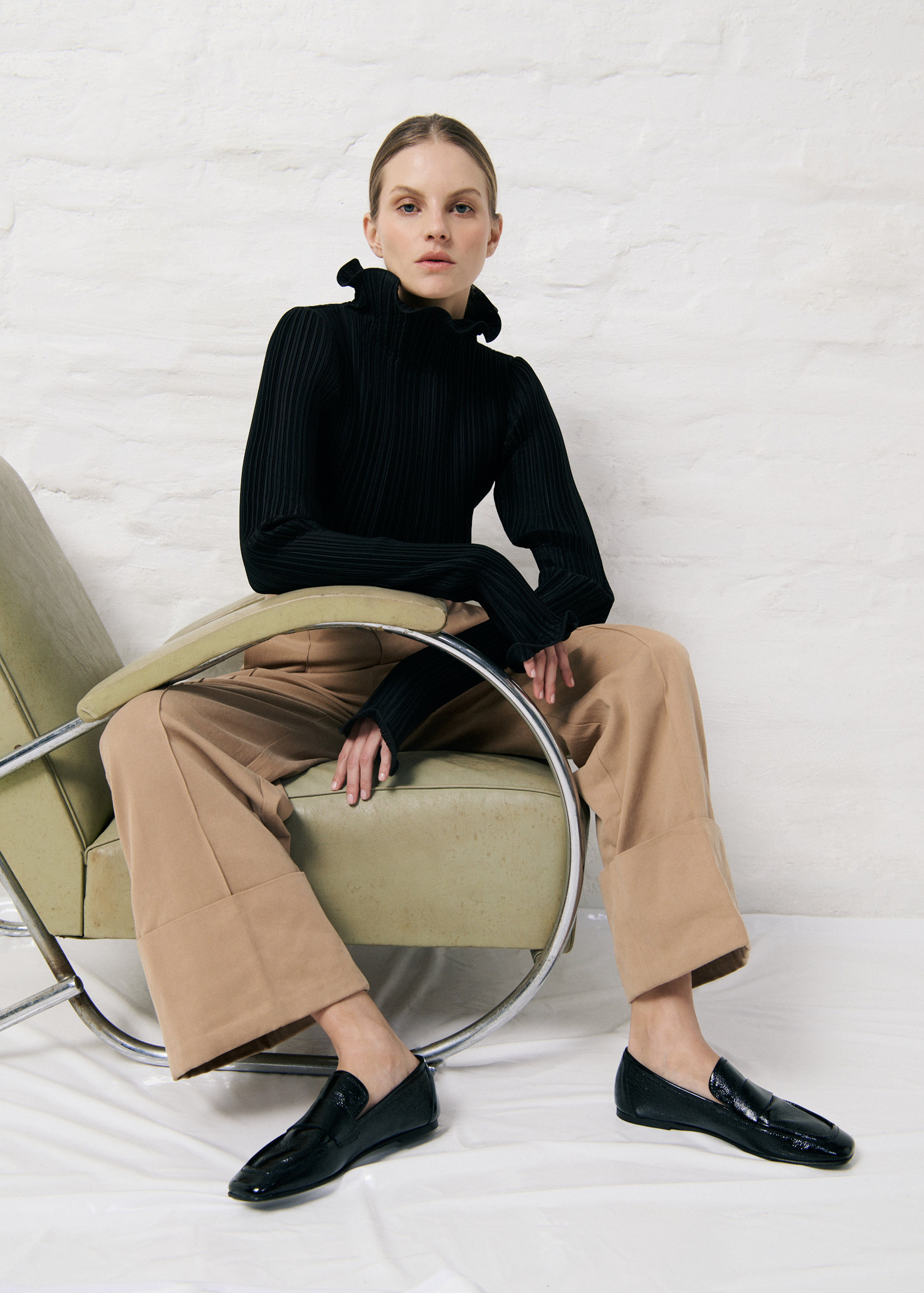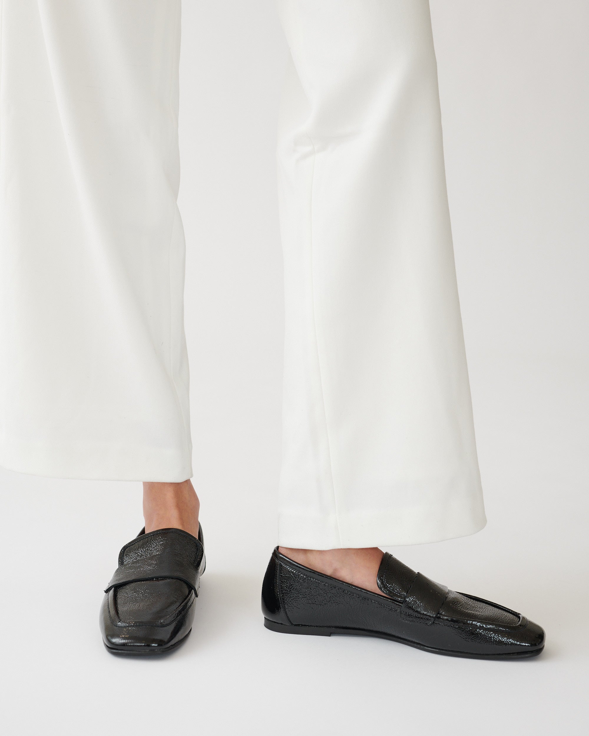 Featuring a subtly-creased texture in high gloss leather, the Emilia loafer works with tailored suits to summer dresses and everything in between.