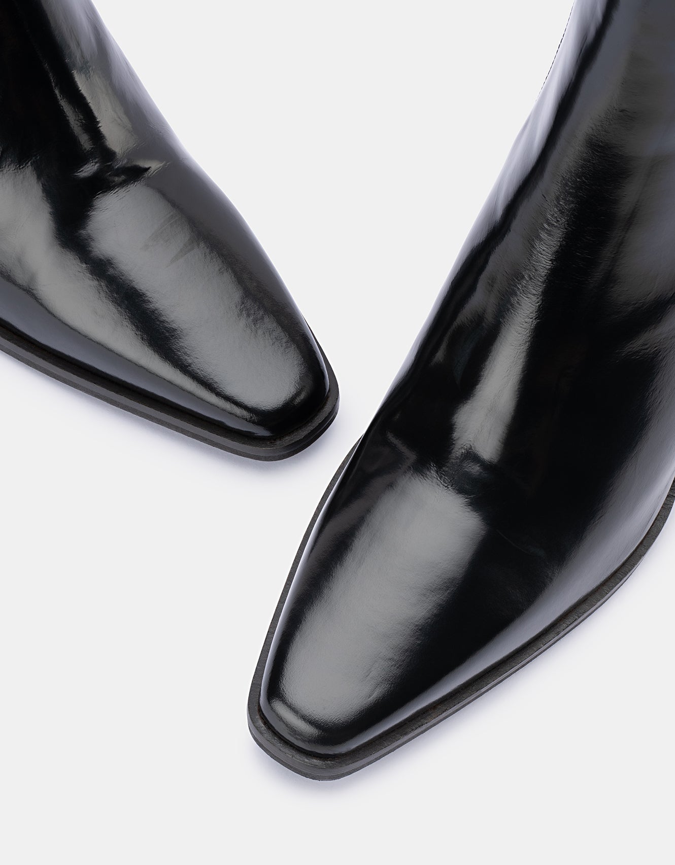 The Giorgia boot is our modern ankle silhouette. Handcrafted from luxurious Abbresavato leather. Featuring an elasticated side panel, squared off toes, and block heel, Giorgia is comfortable for all day wear. Wear yours with vintage denim, billowing skirts, or tailoring for a sleek finish.