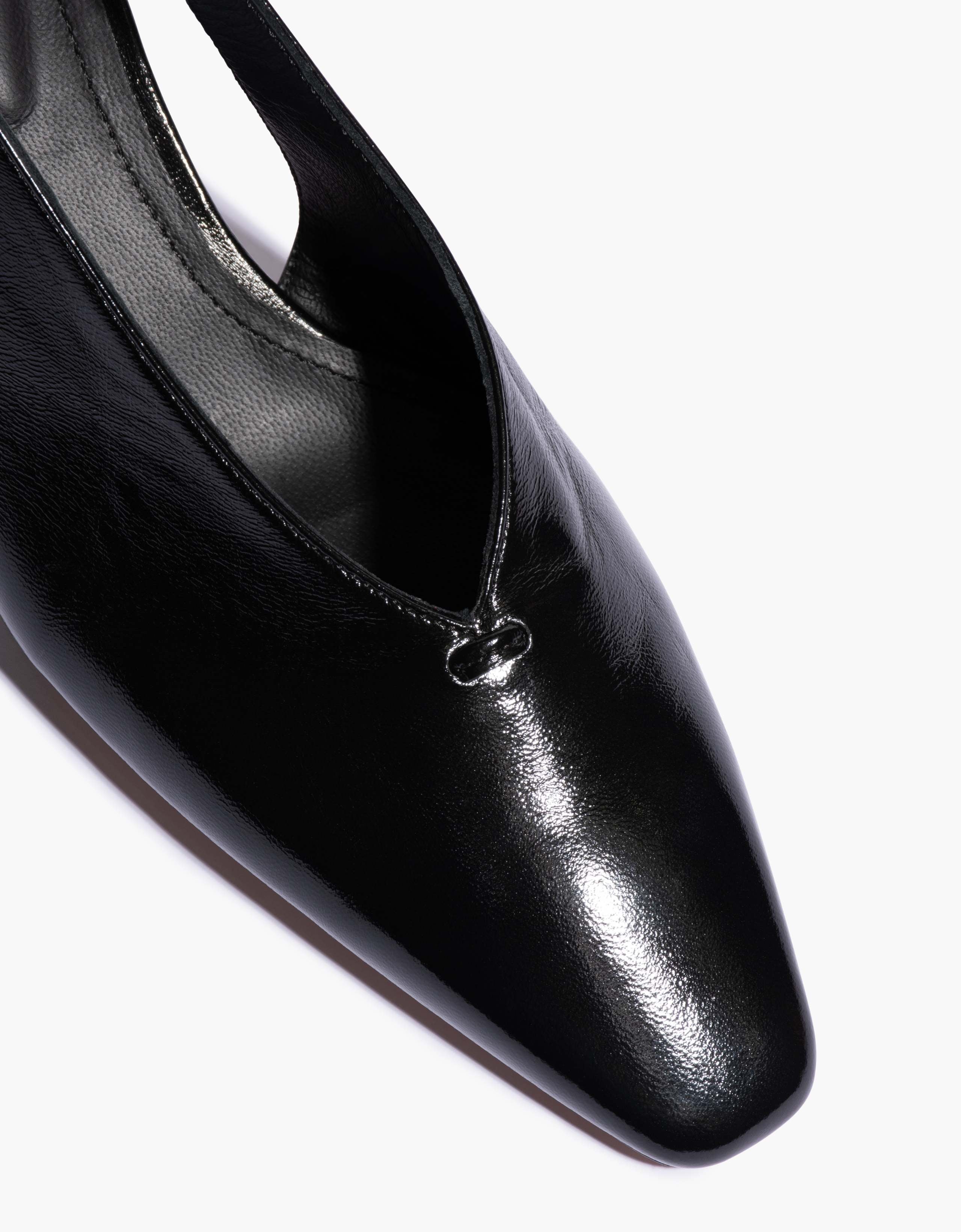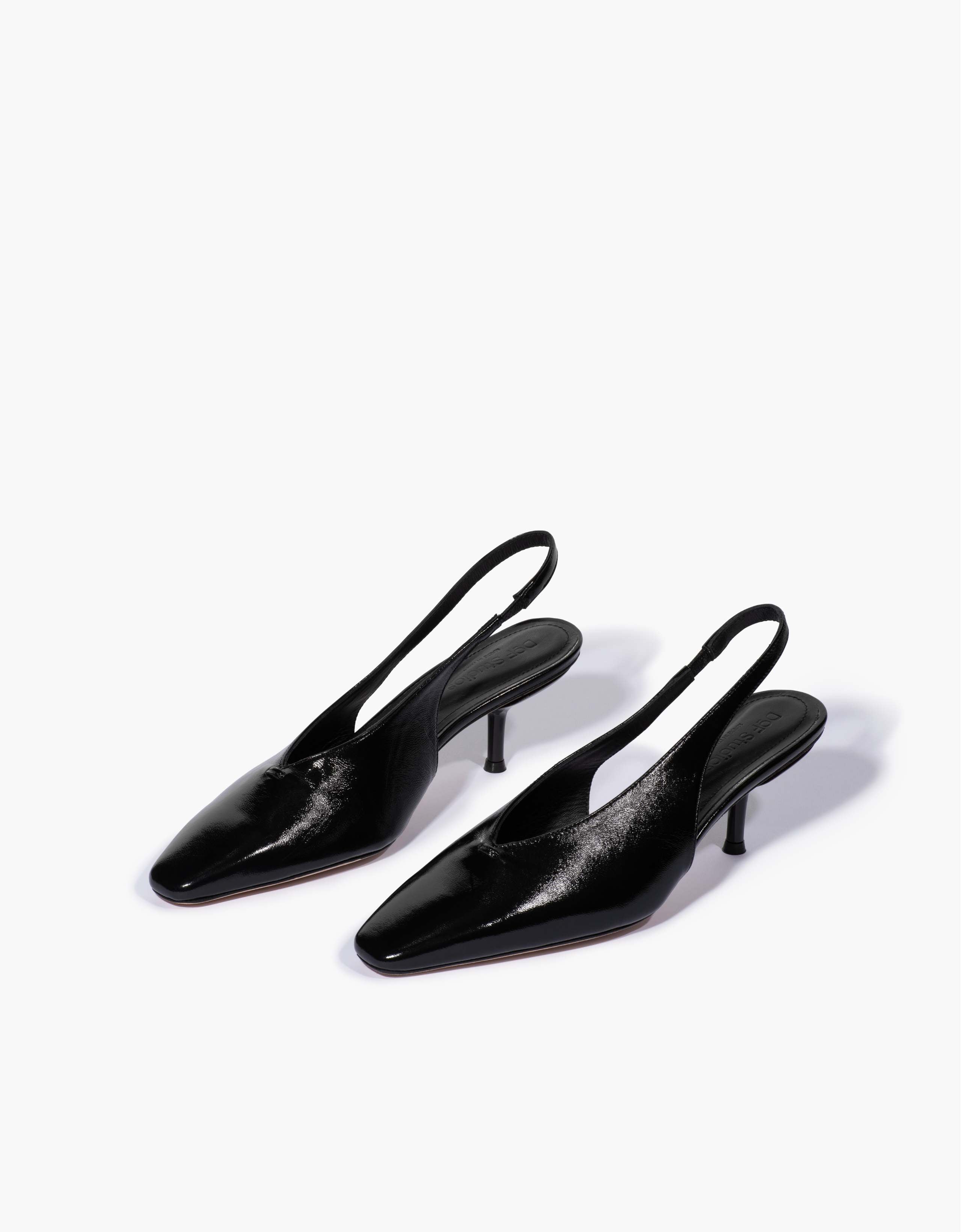 The Lulu Slingback Heel offers a modern take on a timeless silhouette featuring a slingback strap and middle stitch detail. Crafted with a high gloss finish, Lulu is a sophisticated silhouette that perfectly transitions from desk to dinner.