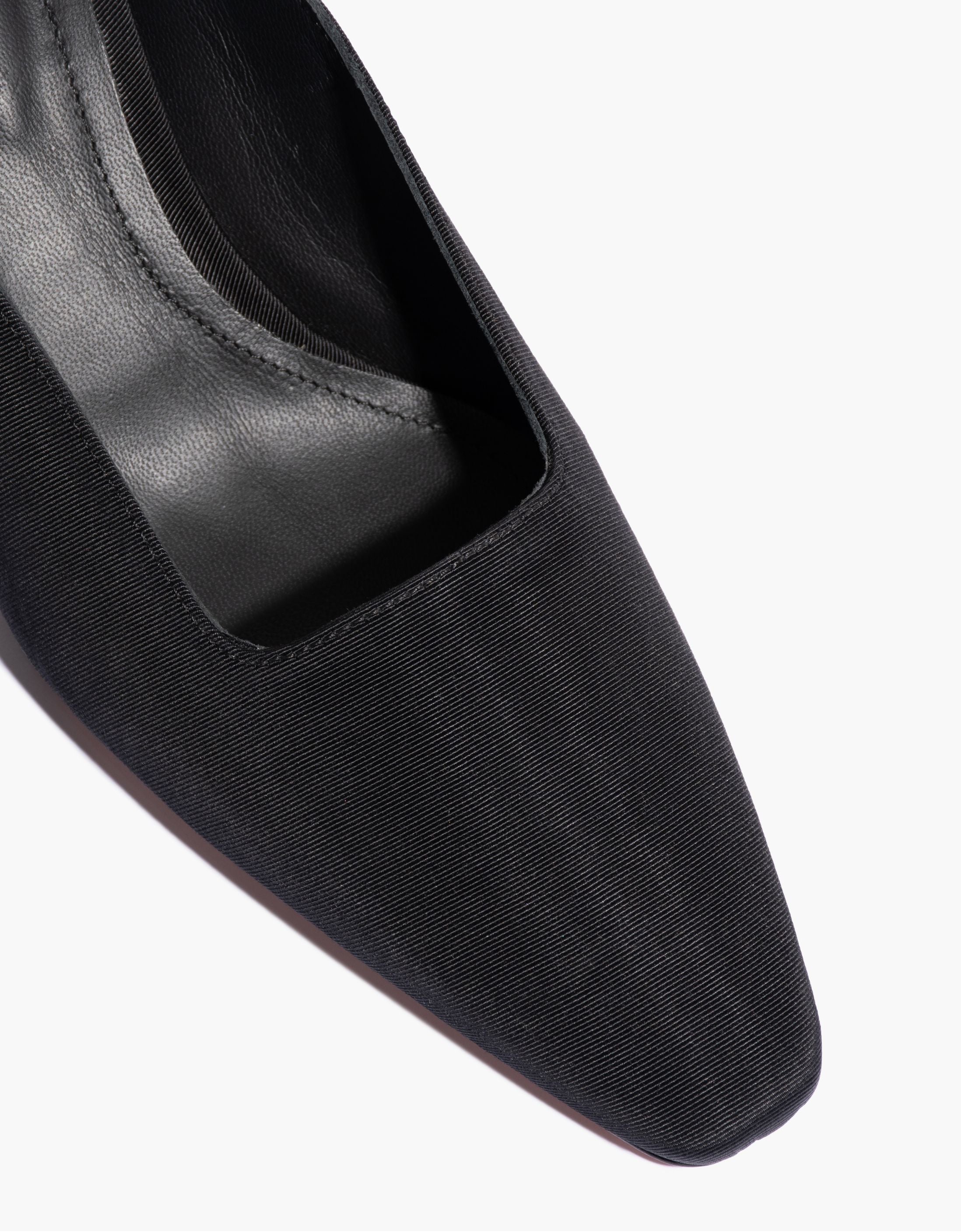 The Margot Heel features a sleek kitten heel and squared pointed toe. With its effortless slip-on, backless design, Margot moves seamlessly from desk to dinner, embodying refined versatility.